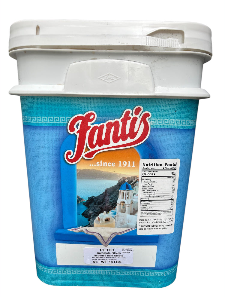 18 Lb bucket pitted kalamata olives good for salad.