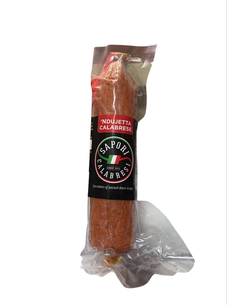 'Nduja is a traditional Calabrian spreadable salami known for its spicy flavor and creamy texture. Made from premium pork and a generous amount of Calabria's renowned red peppers, it offers a vibrant and versatile condiment that melts delightfully when heated.