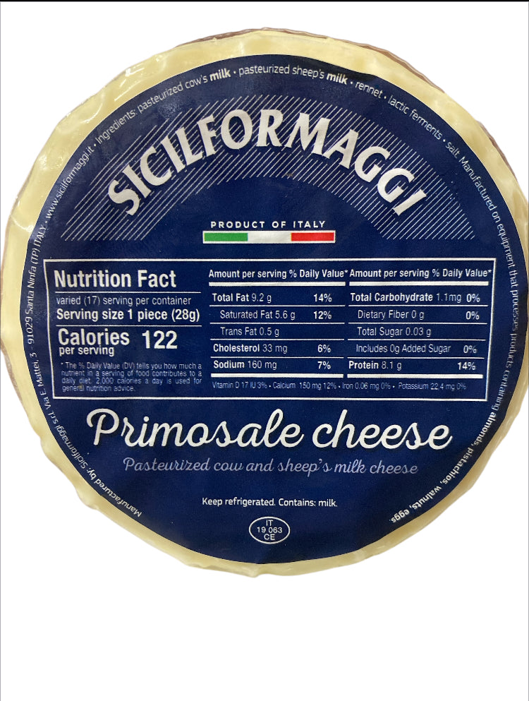 Manufacture by: sicilianformaggi srl via Enrico Mattei 3 Santa Ninfa Trapani ITALY.